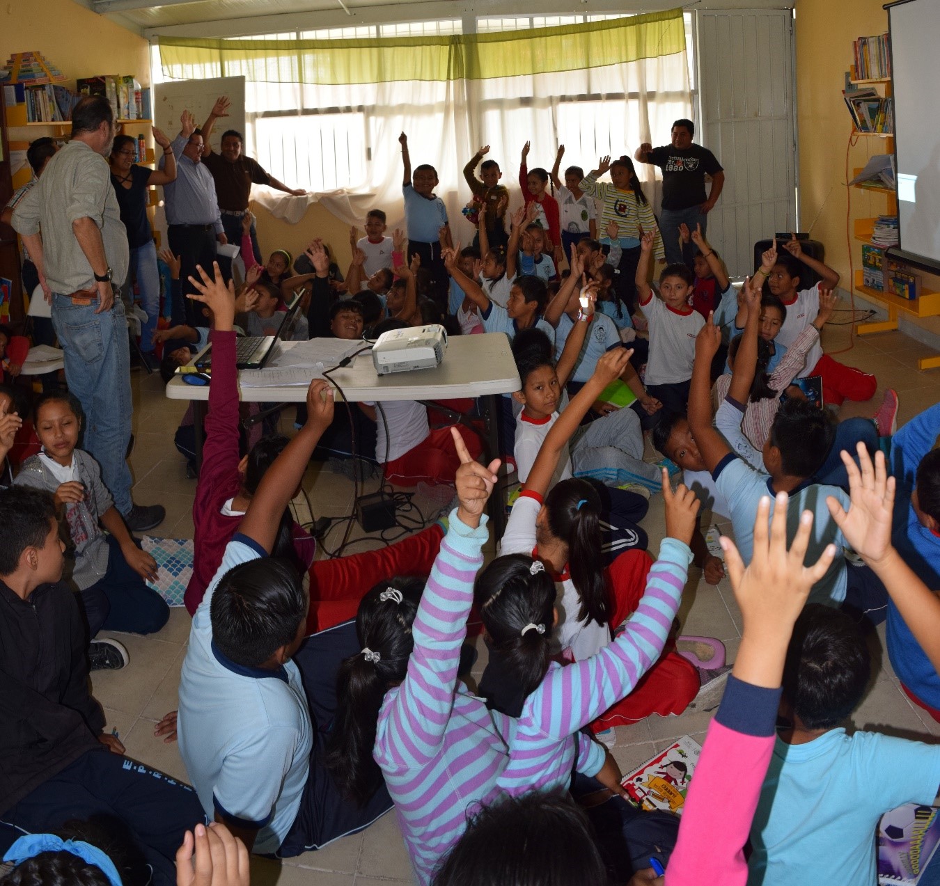 «Estrategia de Comunicación para la Conservación del Jaguar en la Región de Calakmul, Campeche» cuyos productos fueros los siguiente: 8 especies de Radio en Tzeltal, Sotil, maya y español, 7 videos abordando el temas de la cacería furtiva, de la ganadera, apicultura y turismo acompañado de esta fotos de los niños asistentes al taller de prsentacion de la propia estrategia de comunicación en la Primaria de Xpujil.